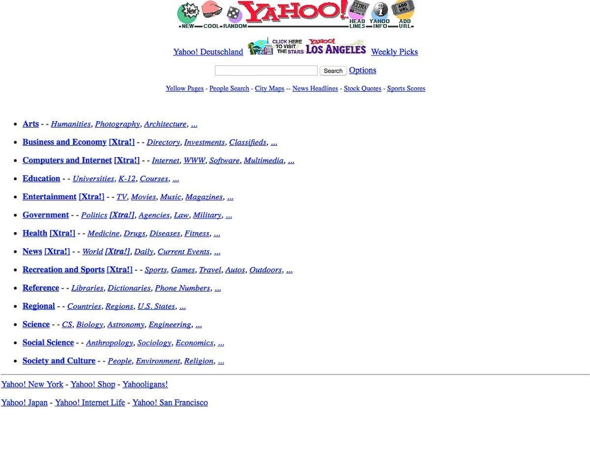 If I’m being technical, Yahoo! began as a search “directory” rather than a search engine, which typically refers to a site that gives users the ability to search the indexed results of an automated web crawler. Directories, on the other hand, were often curated by humans.