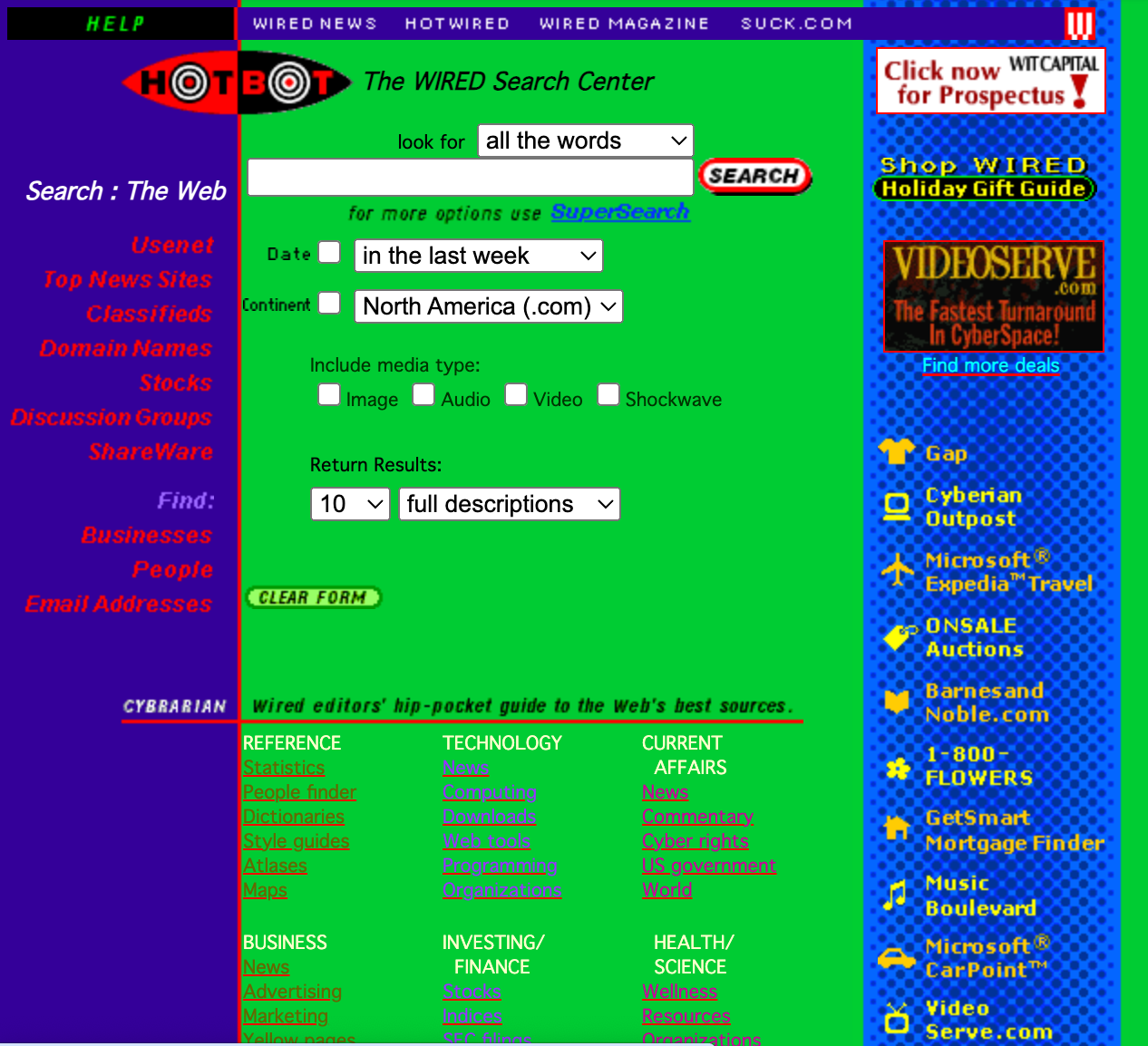 I’m working from distant memory, but most of the search engines at the time tried to strike some balance between engine and directory. The results, as you can see above, were kludgy and crowded pages. Google’s emergence (and rise to dominance) in the early 2000s had almost as much to do with the clean appearance of the site as it did with the engine behind it.
