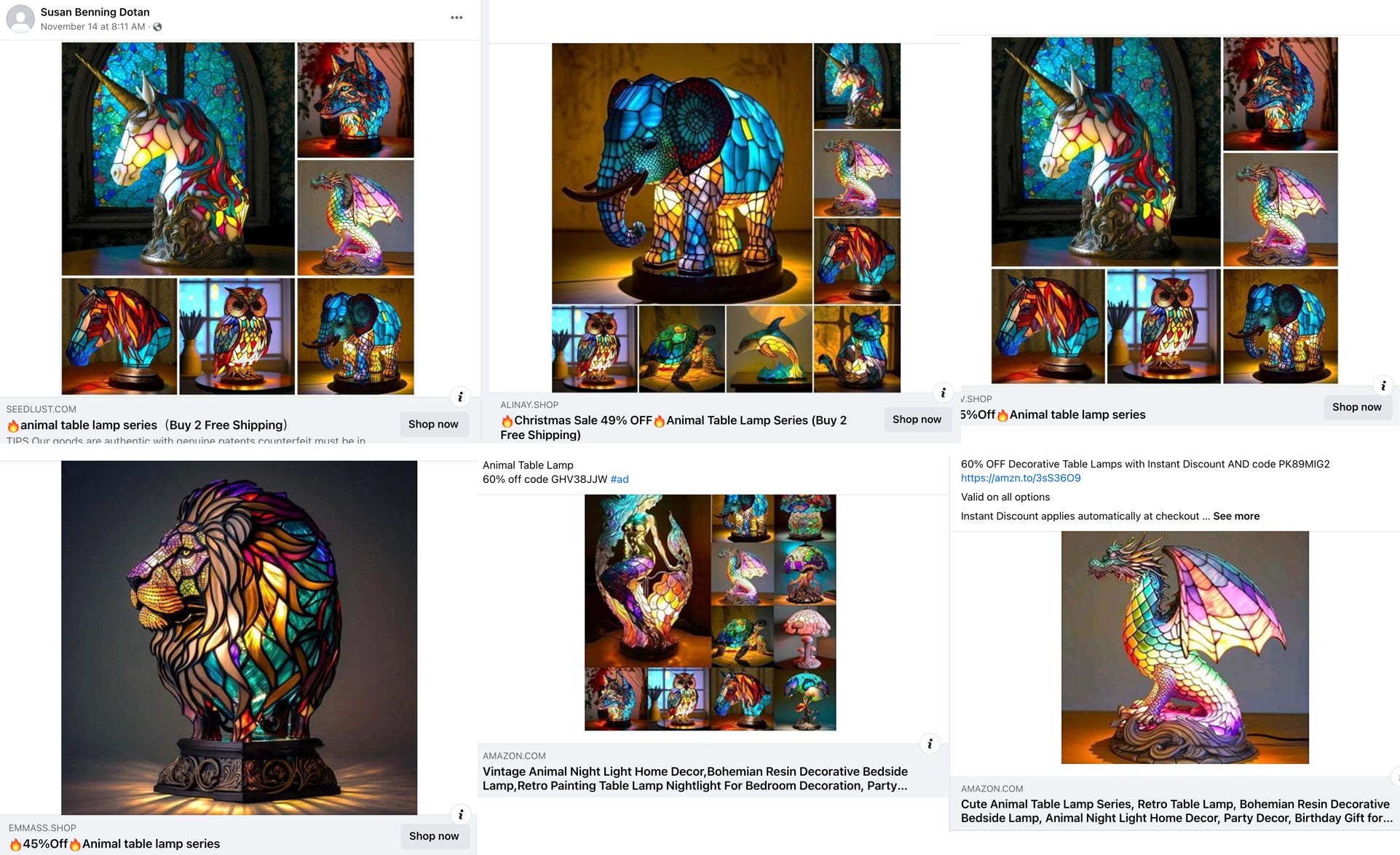 Perhaps you’ll see where I’m going here. While there’s a certain degree of ethics involved in accurately describing your products (an ethics more than often ignored by purveyors of magnets), you can name a product anything you like, and there’s no real recourse for the customers who are misled. So you might have certain expectations from products in an “Animal Table Lamp Series,” particularly those called “Handcrafted Vintage Stained Glass Table Lamps.” But honestly, and especially if you’re opening up your own fly-by-night virtual storefront, there’s nothing to stand in the way of selling crumpled up balls of notebook paper and naming them thusly.